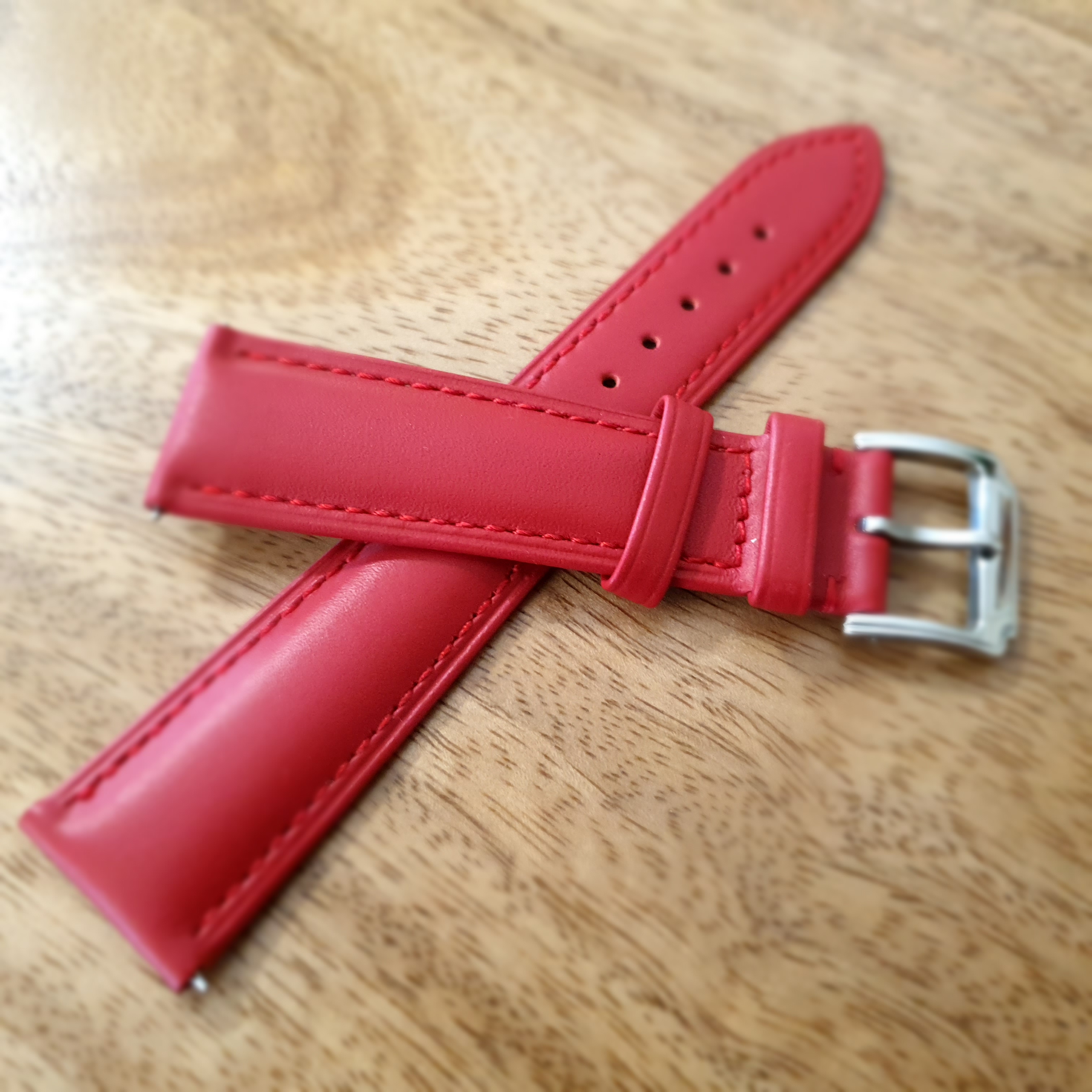 Red Leather Watch Strap / Coolum Plain / Quick Release